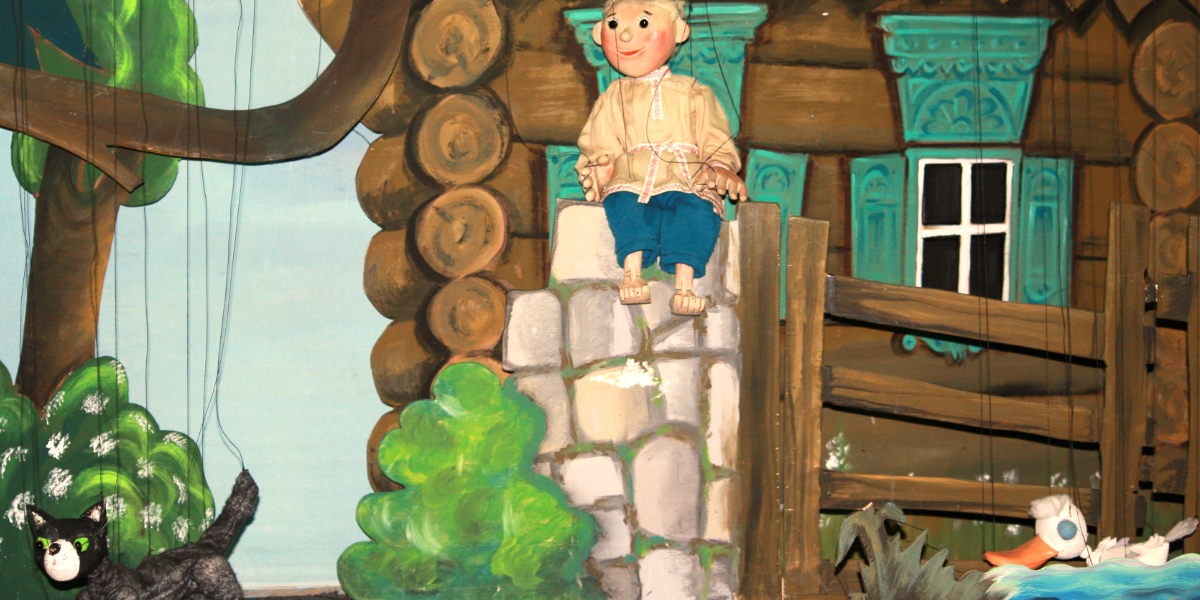 liebevoll gestalteten Marionetten in malerischer Kulisse auf der Bühne gekonnt
